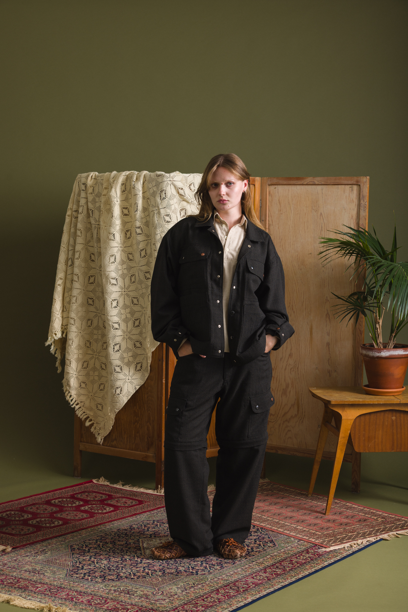 HRC ultralight wool & cashmere jacket with back pleats in charcoal