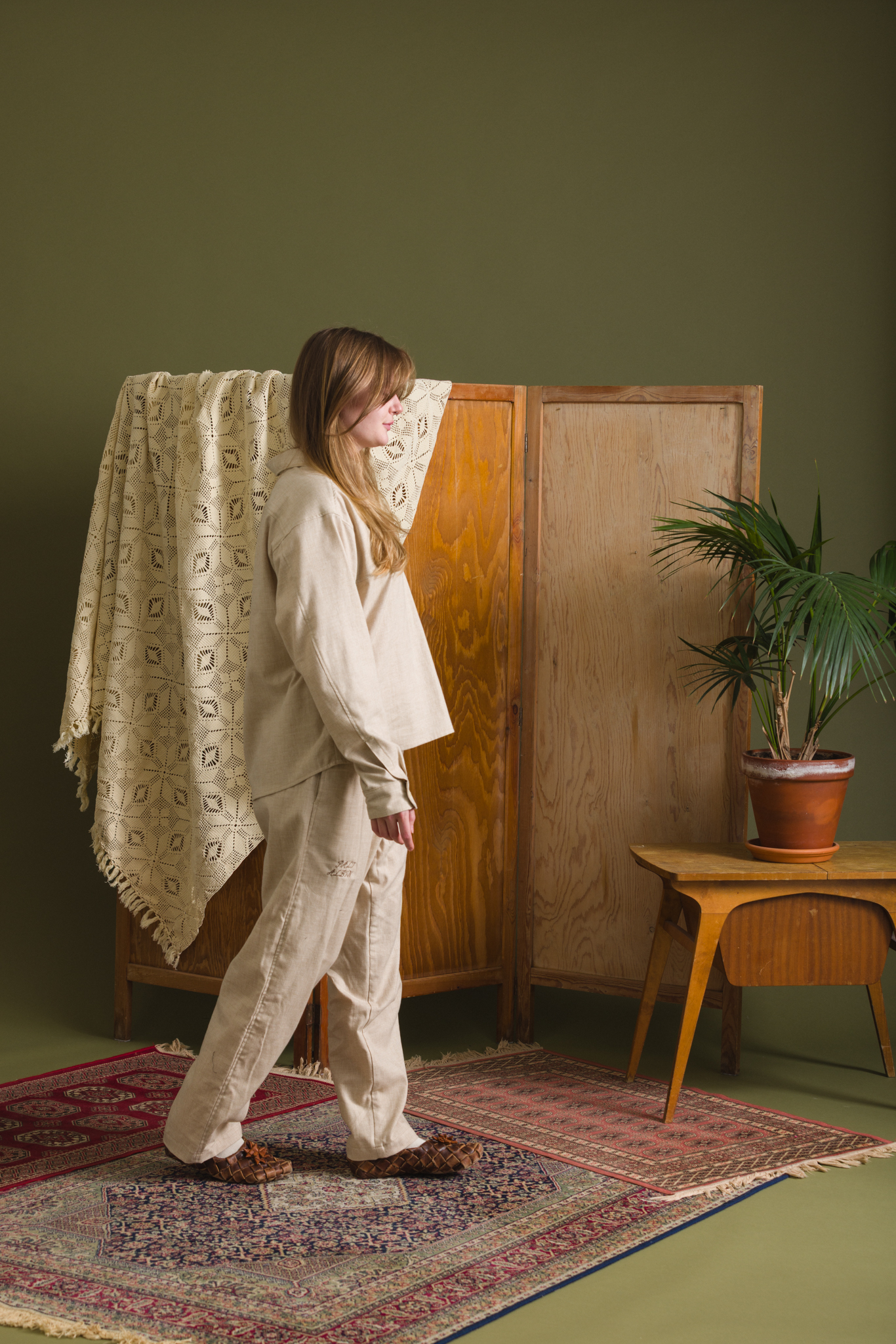 HRC half placket cotton & wool lounge shirt in oatmeal